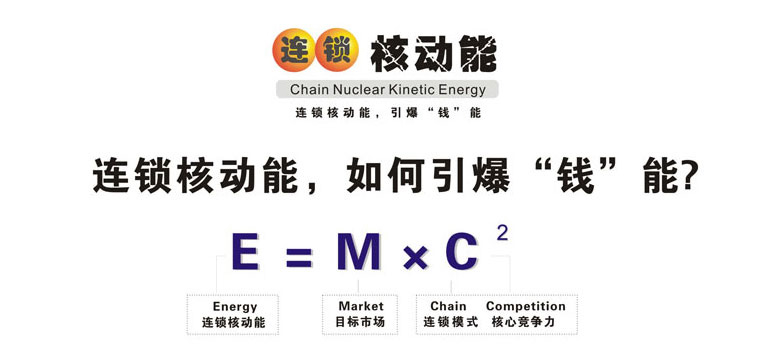 • 廣州采納企業(yè)管理顧問有限公司陳宏創(chuàng)建的連鎖核動能理論 以愛因斯坦的能量公式為基礎創(chuàng)建,其理論意義是: 企業(yè)找準了目標市場,以連鎖的方式經營,核心競爭力越大, 推動其發(fā)展能量就越大。